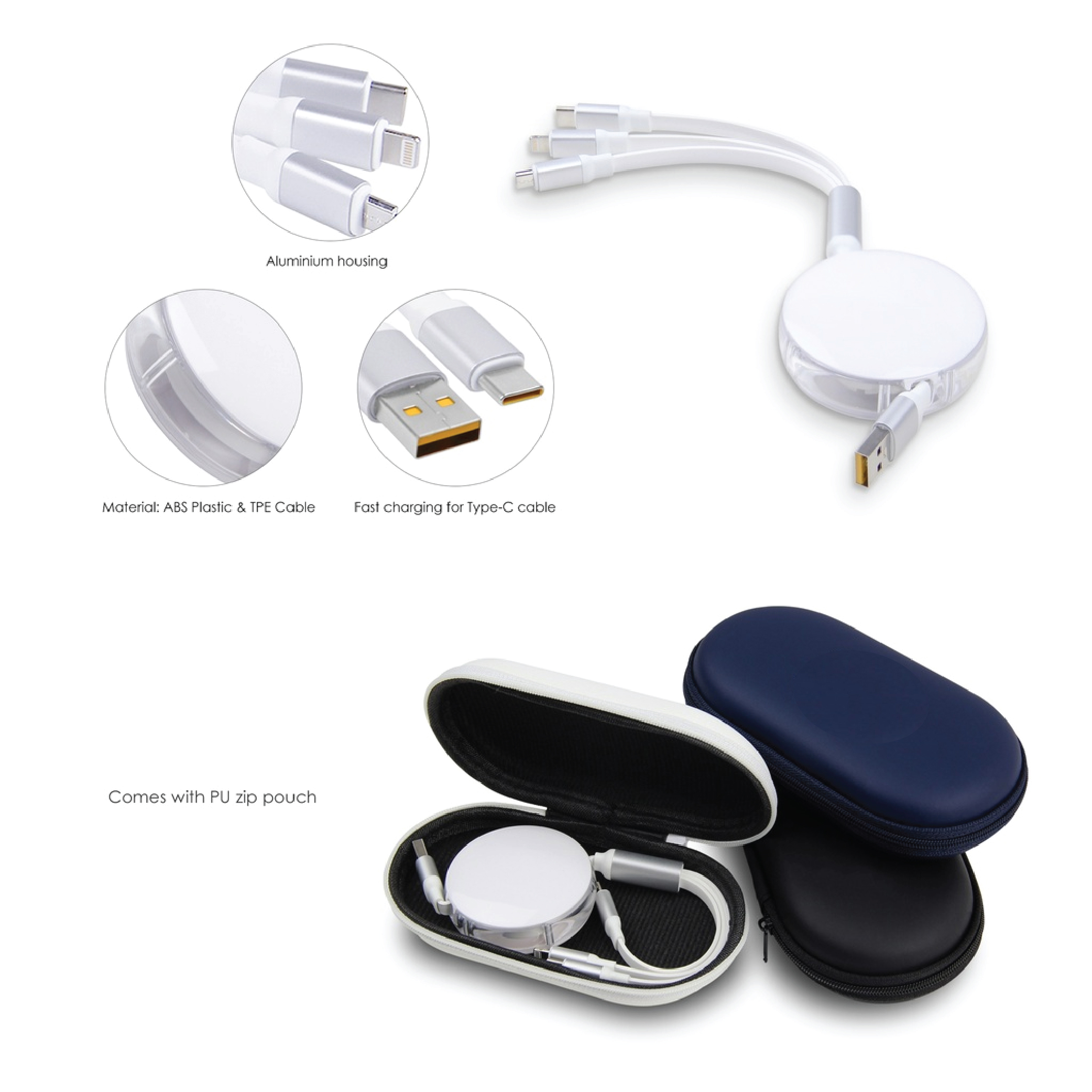 Product Material : Casing – ABS & Cable – TPE cable with an aluminium connecting case